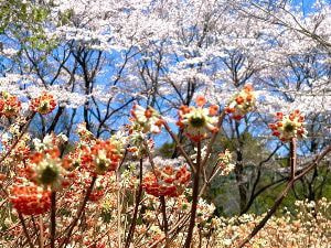 花の時期は、ミツマタよりやや遅れて咲き、見ごろは3月中旬~4月中旬と長く、周辺の桜の満開時期とも重なる。